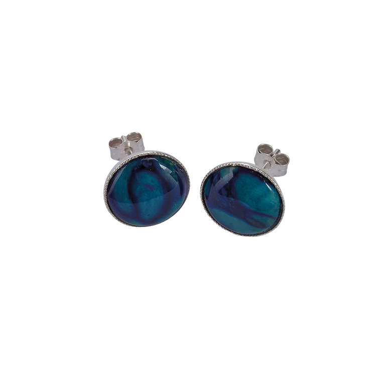 Round Sterling Silver Stud Earrings with Milled Edge.